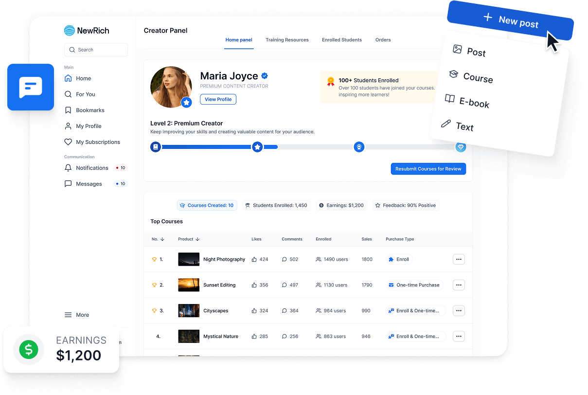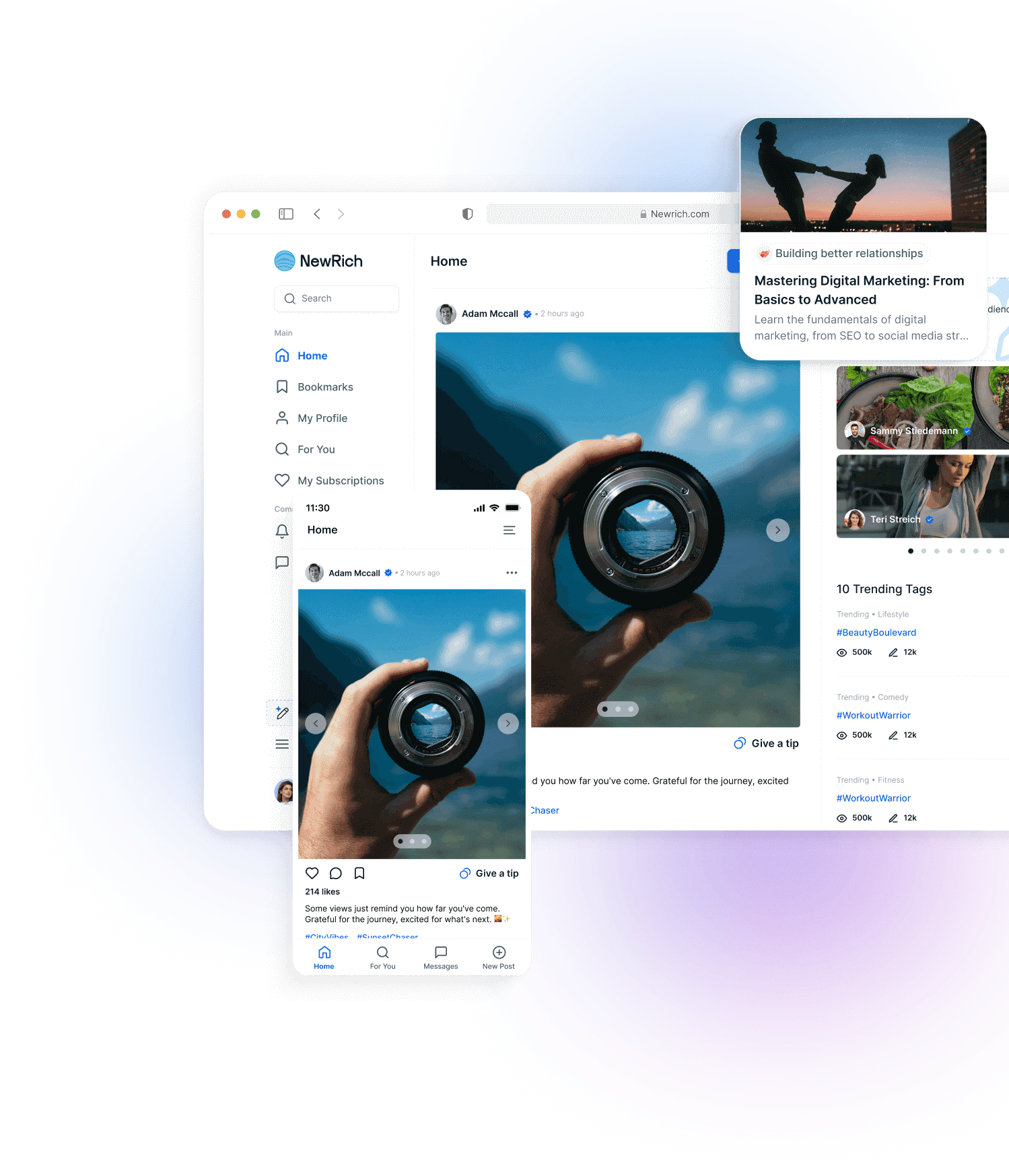 Newrich.com is a learning platform and subscription network built on creator commerce that connects creators with followers who are passionate about building the life of their dreams.