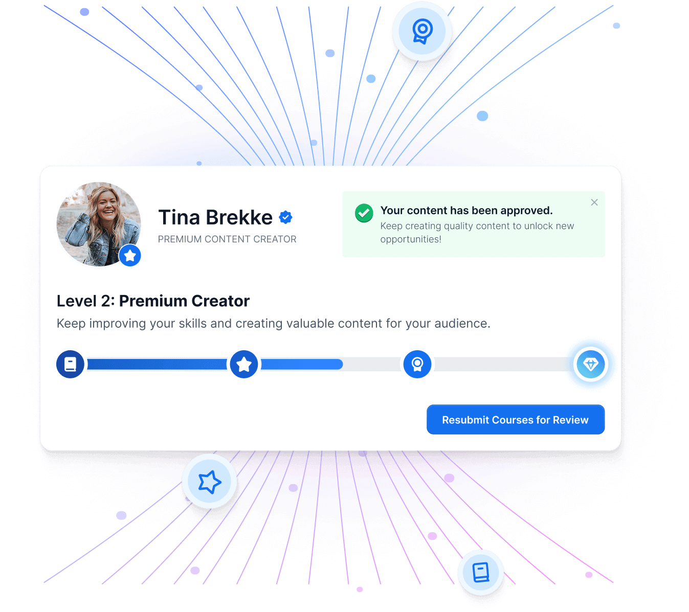 You're at the top of your field. If you issue your own certificates upon course completion - this tier is for you. Certified creators enjoy top-tier earning opportunities.