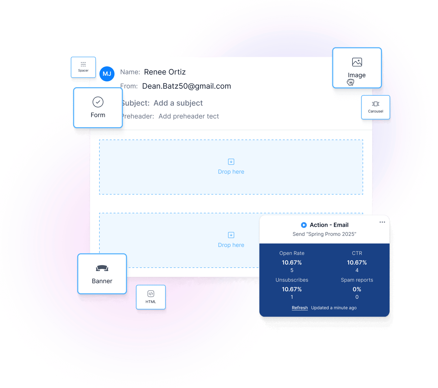Design emails your audience actually wants to read — fully customizable, incredibly intuitive.